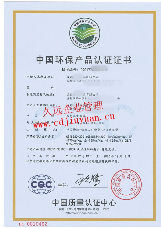 中國環(huán)境標志產品認證證書(十環(huán)認證)